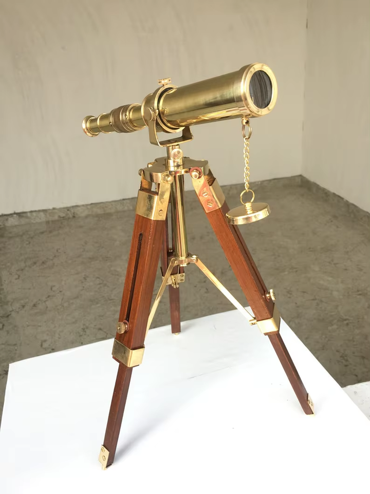 Nautical Brass Telescope With Wooden Adjustable Tripod Handmade Tabletop Spyglass Telescope Gift Home and Office Decor