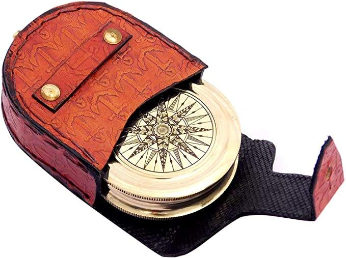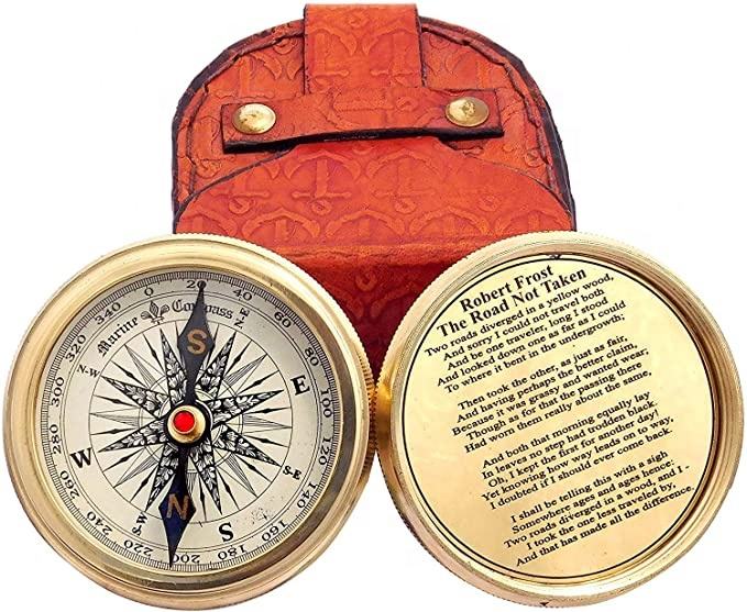 Nautical Brass pointing poem Compass antique Robert frost Handmade Brass Compass Antique With leather case gift