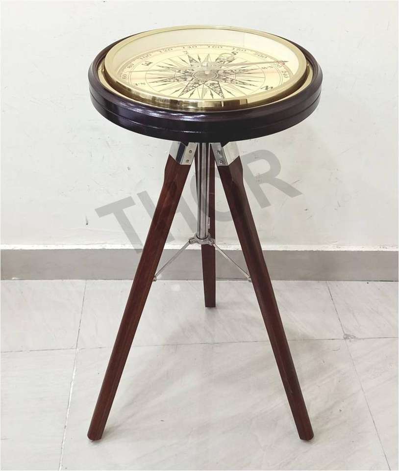 Nautical ~ Brown Finish Clock With Tripod Table Clock Home Decor