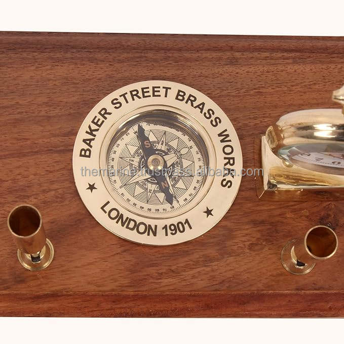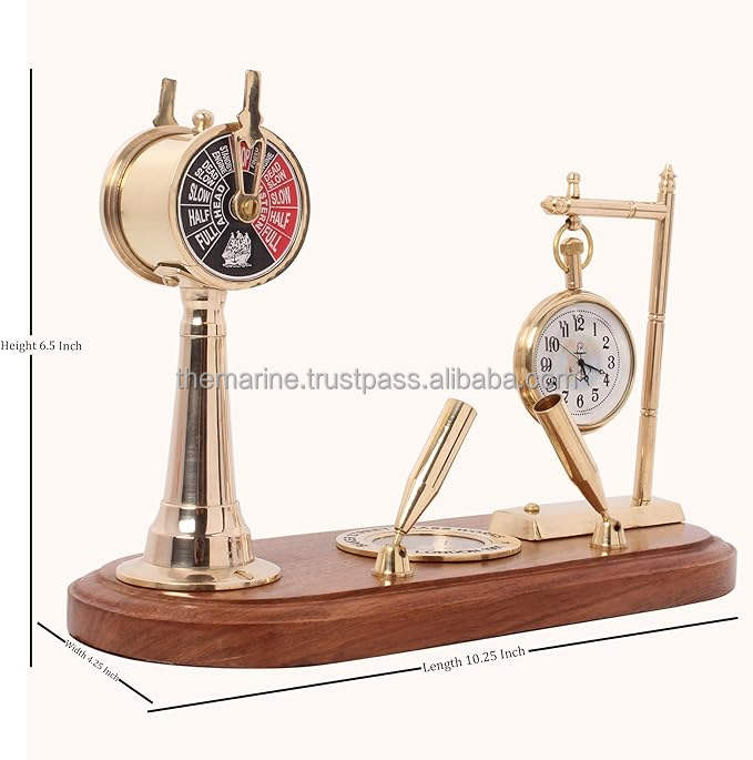 Nautical Double Pen Holder Vintage Desk Organizer Ships Telegraph Engine Order Telegraph Brass Clock Nautical Brass Compass
