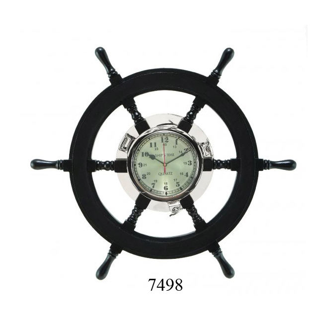 Nautical Marine Wooden Ship Wheel With Brass Frame and Clock for Wall Home Office Decoration Manufacturing and Supplying