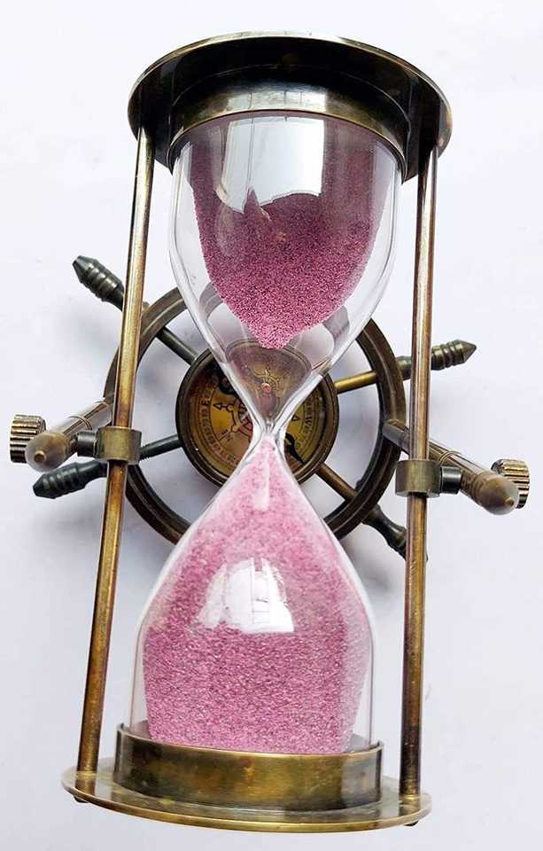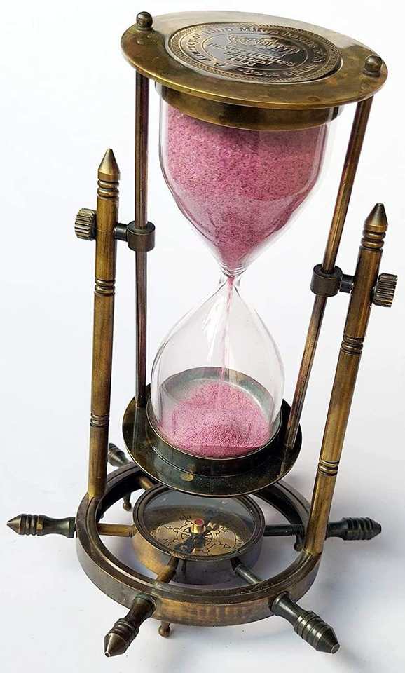 Nautical Sand Timer Hourglass With Unique Wheel Compass Timer an Antique Showpiece 5 Minutes Time