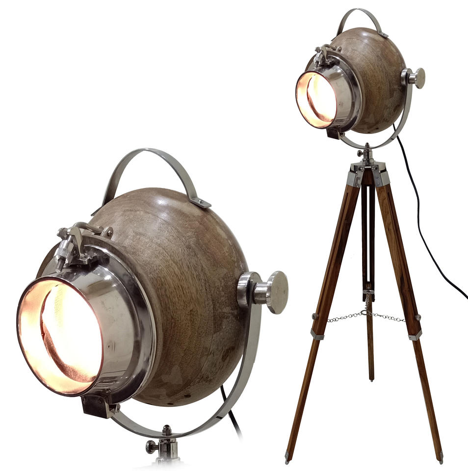 Nautical Spotlight Hollywood Searchlight Floor Lamp Unique Tripod Design With Wooden Stand for Home Office & Hotel Office Decor