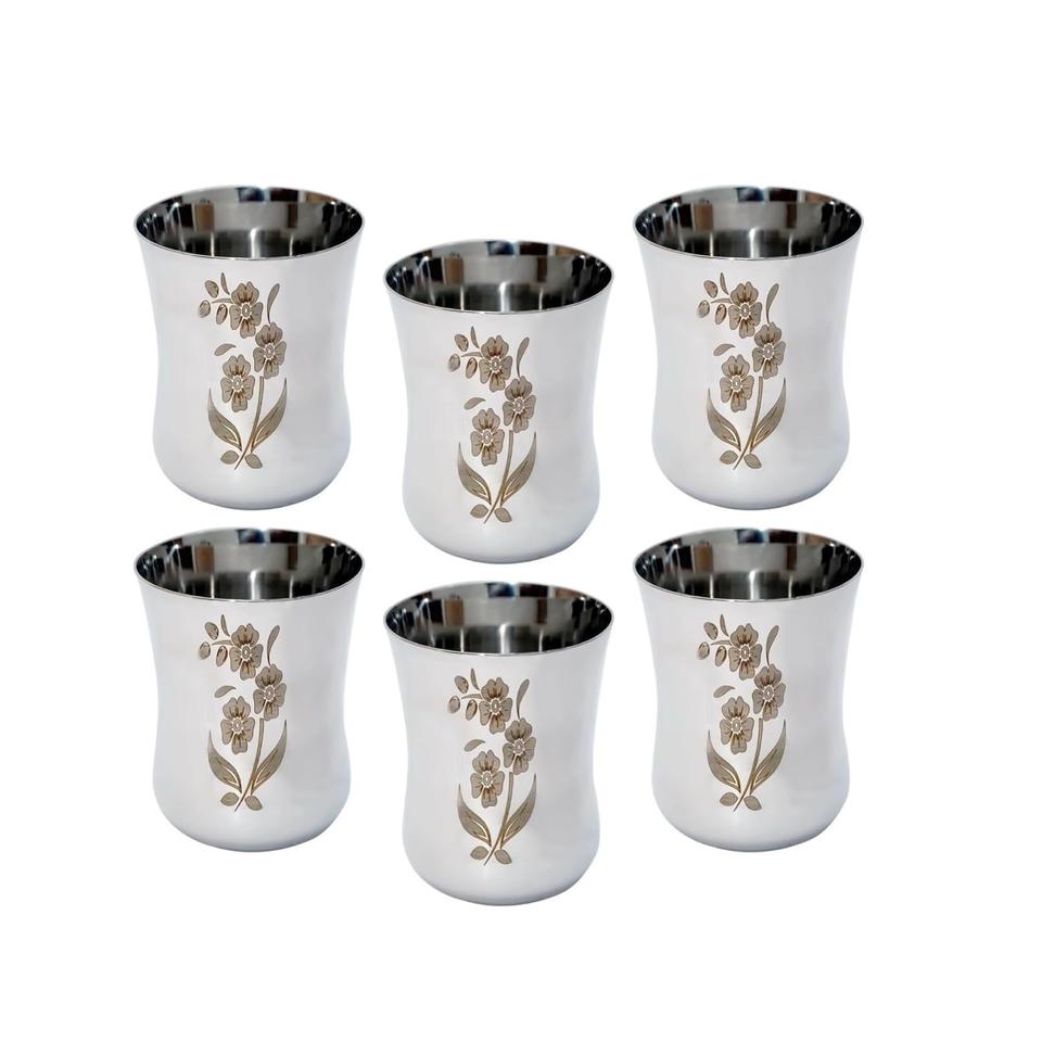 Nautical Stainless Steel PP Plastic Drink Water Glass Etching Embossed Silver Plated Tumbler 50ml Eco-Friendly Red Box