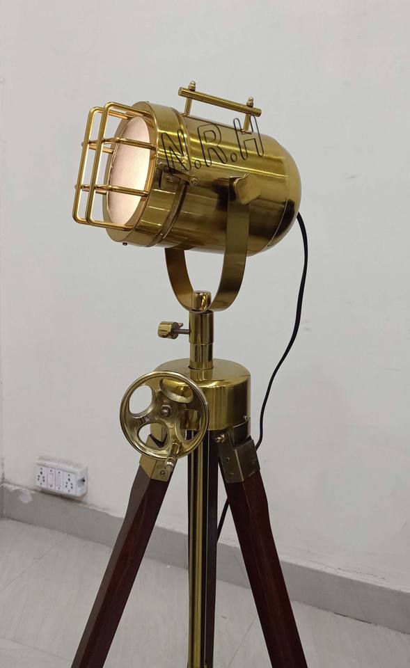 Nautical Style Studio Searchlight Floor Lamp Tripod Decorative Stand with Adjustable Spotlights for Home & Office Decor