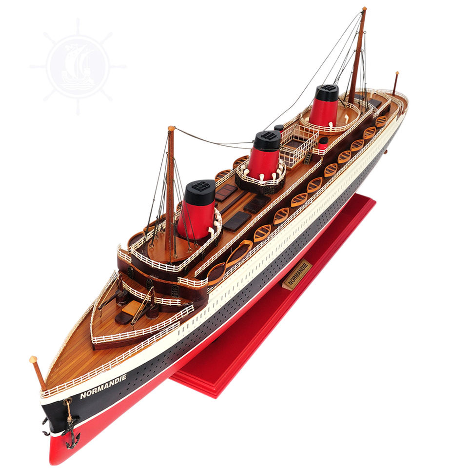 Nautical Style Wooden Normandie Painted Ship Model 80cm Cedar Handicraft for Home Decor and Gift Items