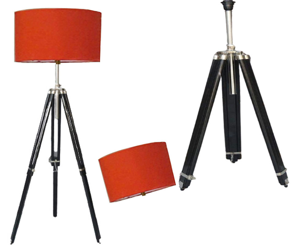 Nautical Tripod Floor Lamp Stand Living Room & Bedroom Light with Red Shade