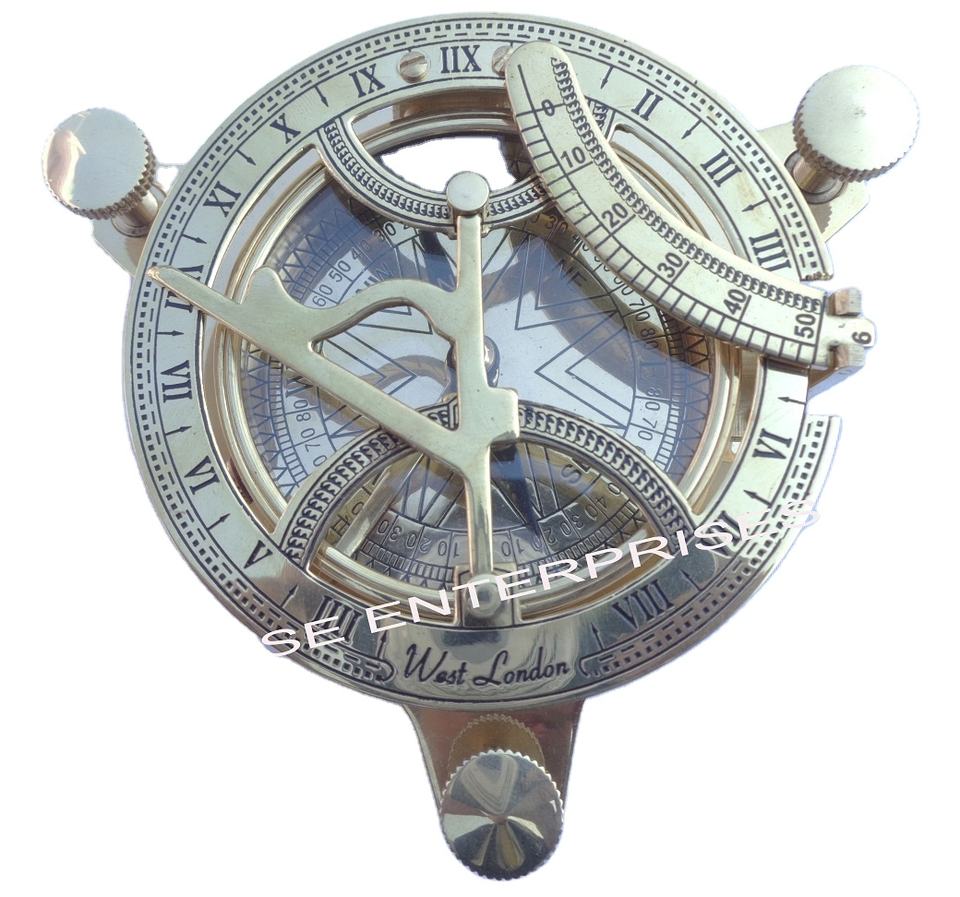 Nautical Vintage Brass Polished Sundial Compass Working Metal Clock with Solid Wooden Gift Box Birthday Gift for Husband
