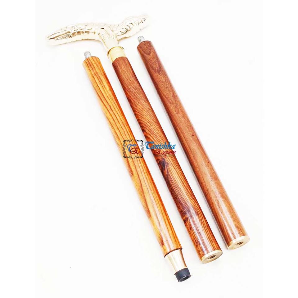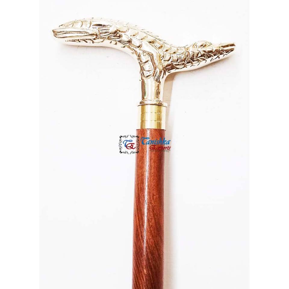 Brass Polish Crocodile Head Handle Foldable Brown Wooden Walking Stick Perfect Gift For Old Age Men & Women With Bulk Price