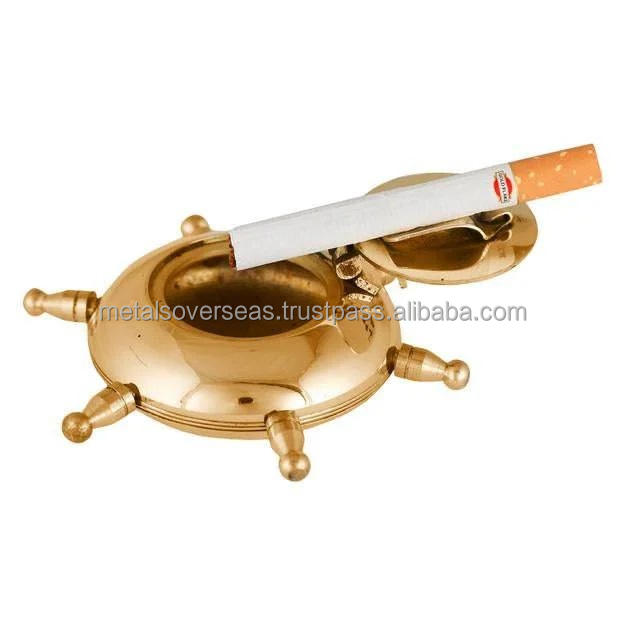 Nautical Wheel Design Brass Ashtray with Custom Fingerprint Metal Lid for Home Restaurant Bar Office Box Packing Designer Border