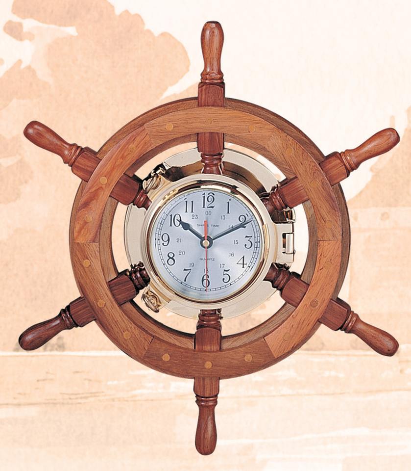 Nautical Wooden Ship Wheel Shape Decorative Wall Clock for Hanging Wall Clock Nautical Marine Style Clock 18 " Decorative Home