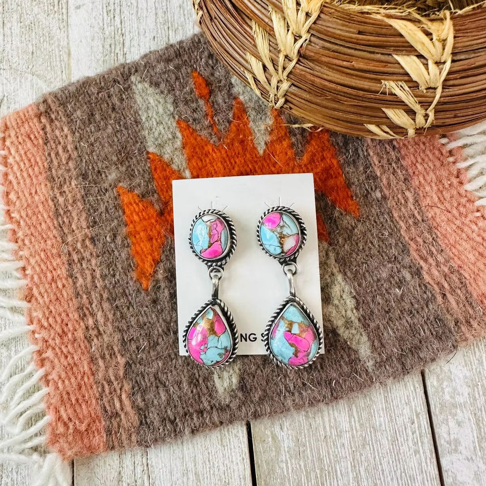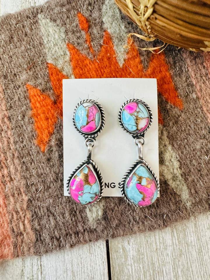 Navajo Cotton Candy and Sterling Silver Dangle Earrings Handmade Artisan Jewelry Gift for Her Boho Style