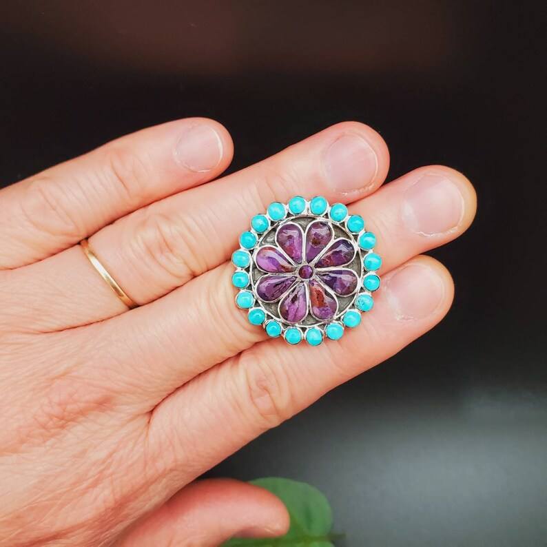 Navajo Pink Heart Conch Shell and Turquoise Sterling Silver Oval Cut Bezel Setting Adjustable Ring for Wedding and Party