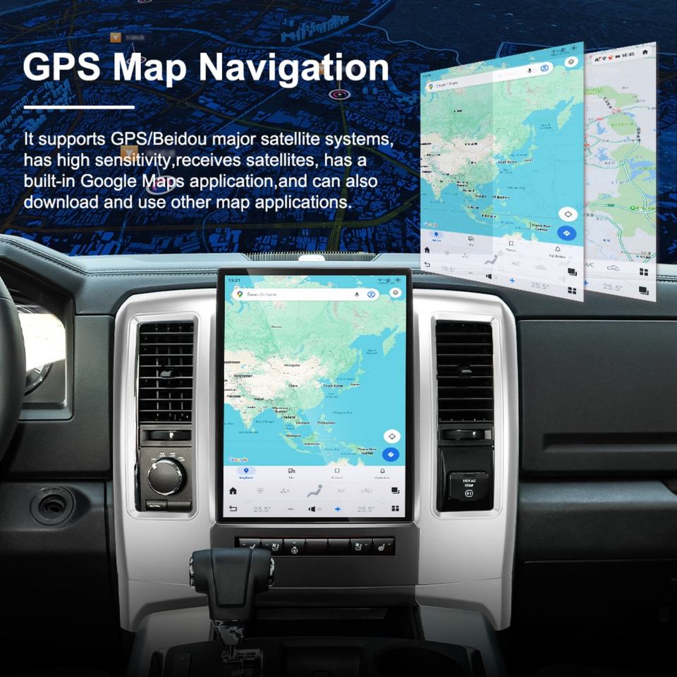 NaviHua Android Car Stereos Navigation Multimedia Carpaly Head Unit Tesla Radio Vertical Screen for Dodge RAM 2009 2011