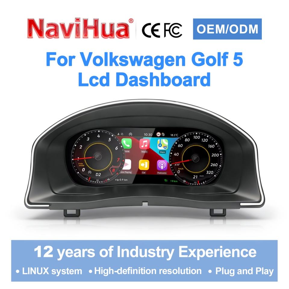 Navihua 12.3 Inch Digital Instrument Cluster for Volkswagen VW Golf 5 2004-2009 LCD CarPlay Auto Speedometer Linux System