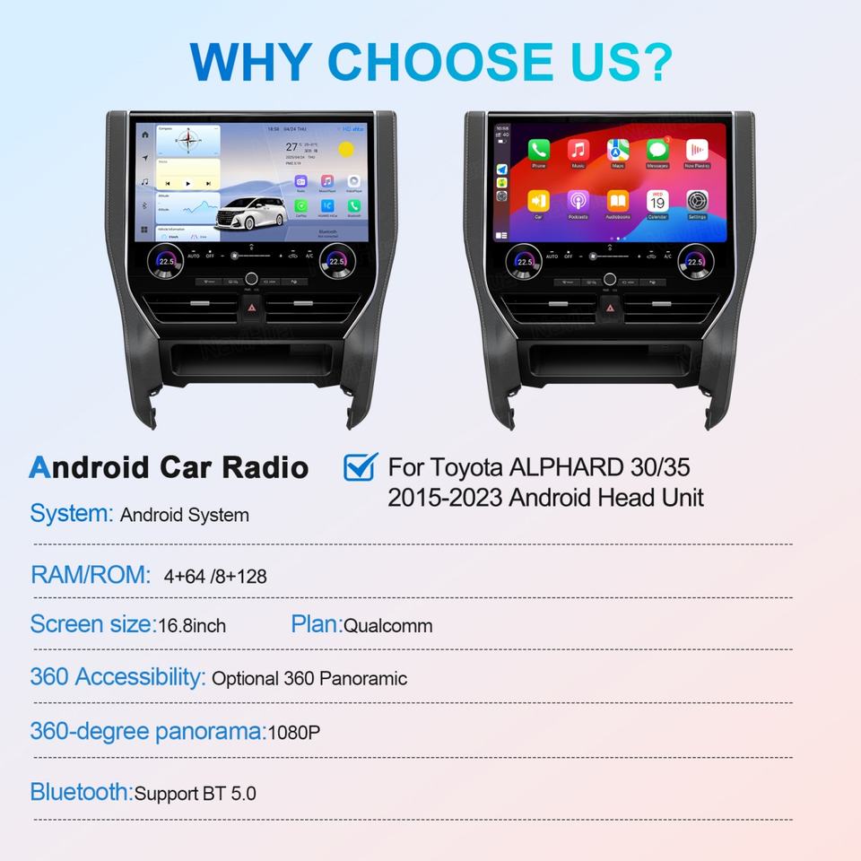 Navihua 16.8 Inch Touch Screen for Toyota Alphard 30 2015-2021 Upgrade to Alphard 40 Car Stereo Auto Carplay Multimedia
