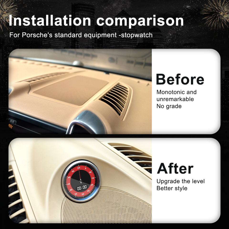 Navihua 2.1 Inch Multifunctional LCD Digital Display Stopwatch for Porsche Cayenne 2011-2017 Interior Dashboard Central Clock