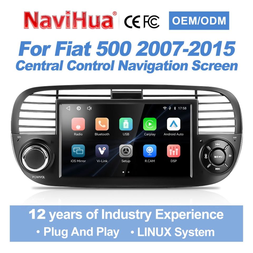 Navihua 7 Inch IPS Touch Screen Car Stereo Linux Navigation System Wireless Carplay Androidauto Car Radio for Fiat 500 2007-2015