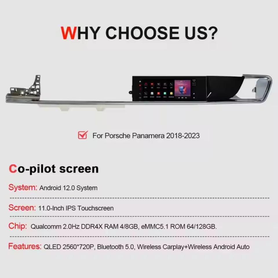 Navihua Android 11" Head Unit for Porsche Panamera 2018-2023 Passenger Touch Screen Co-pilot Multimedia Carplay Entertainment