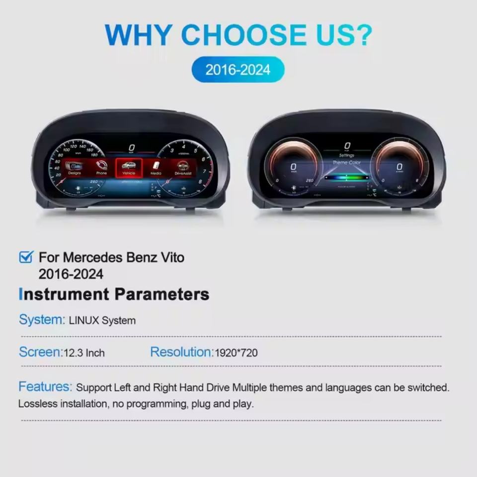 Navihua Car LCD Cluster Digital Instrument Auto Speeometer Dashboard Virtual Cockpit for Mercedes Benz Vito 2016-2024