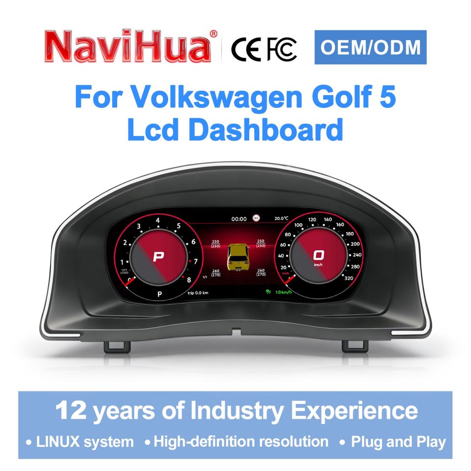 Navihua Car LCD Instrument for VW Golf 5 2004-2009 Cluster Digital Speedometer Linux System CarPlay Auto Display