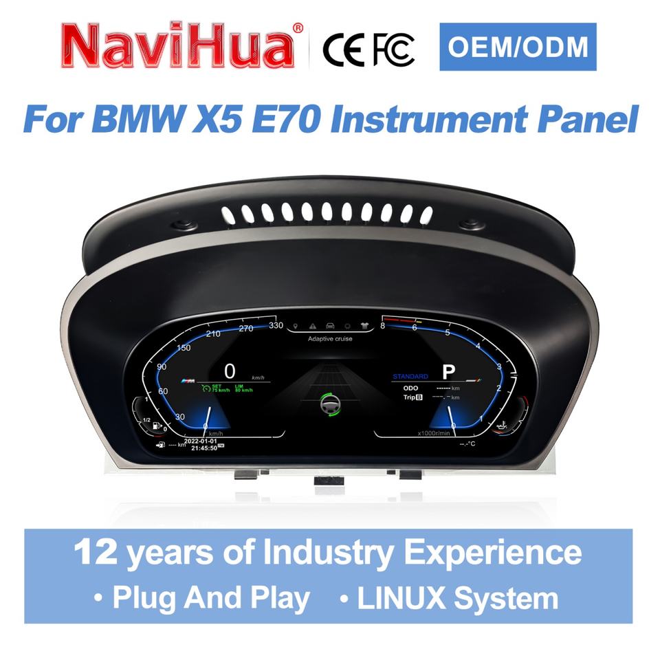 Navihua Car Speedometer Digital Instrument Cluster 12.3 Inch LCD Dashboard Auto Meter for BMW X5 E70 X6 E71 2006-2013