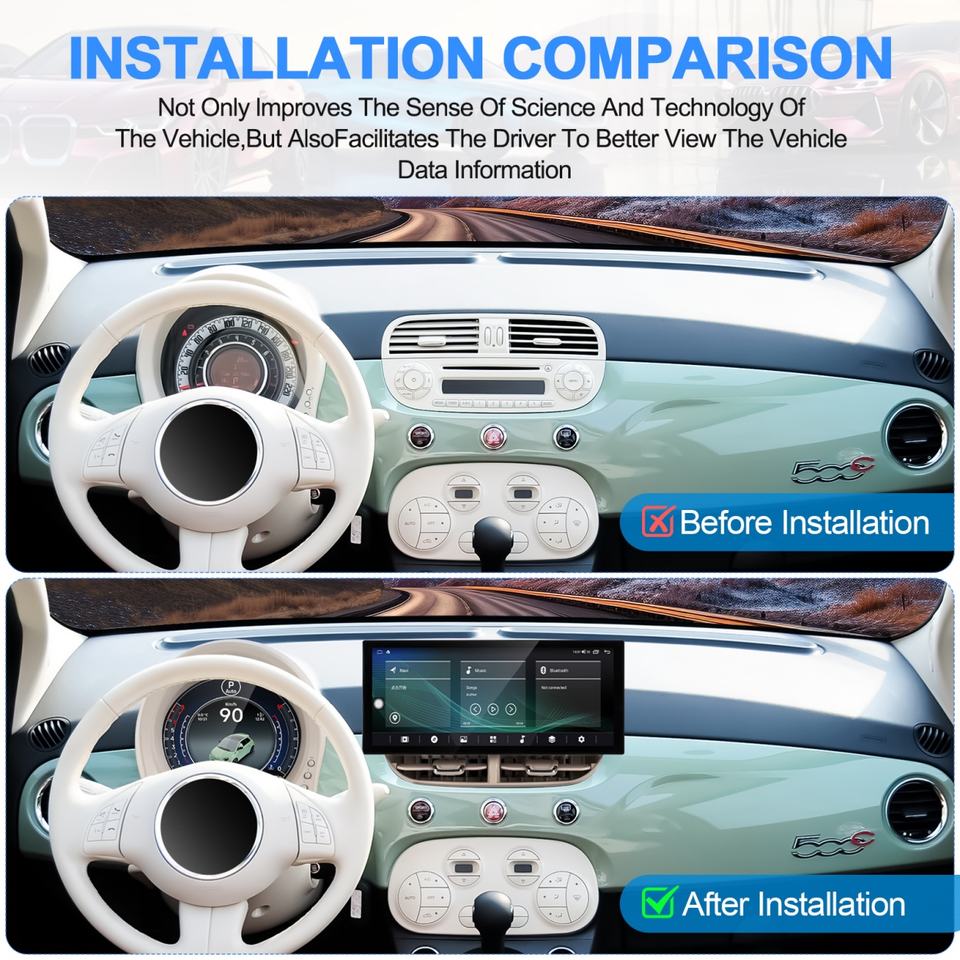 Navihua Car Upgrade Auto Stereo Android Car Radio GPS Navigation Multimedia Carplay Cluster Digital Meter for Fiat 500 2007-2024