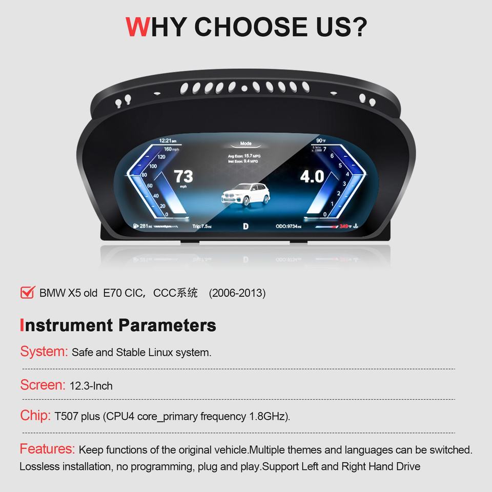 Navihua Digital Instrument Cluster Car LCD Cluster Speed Meter Dashboard Virtual Cockpit for BMW X5 E70 2006-2013