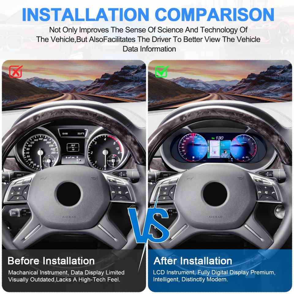 Navihua Digital Instrument Panel LCD Dashboard Virtual Cockpit Cluster for Benz ML GL 2012-2015