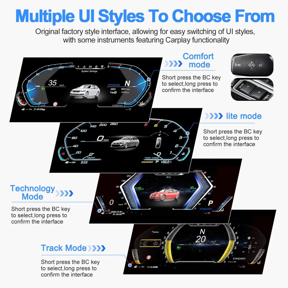 Navihua Digital Speedometer LCD Instrument Panel for BMW 3 Series, 5 Series, 6 Series, 7 Series, X1, E90 Carplay Dashboard