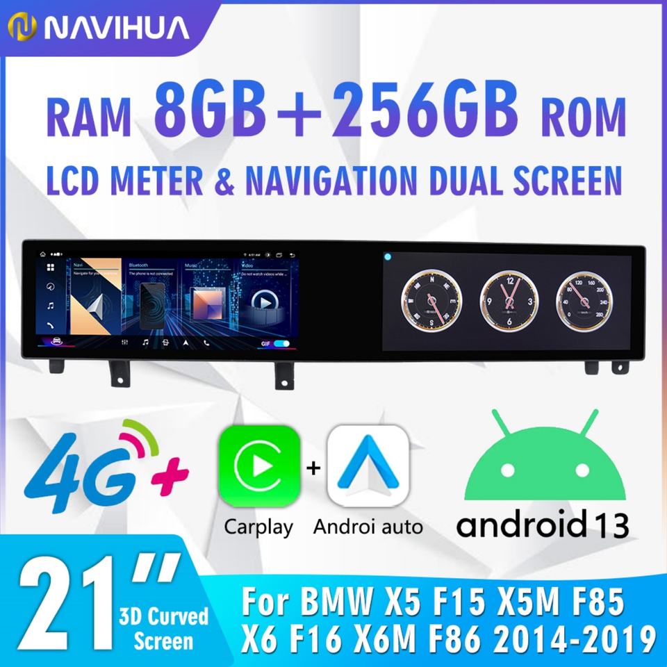 Navihua Dual Screen Android Car Radio DVD Player Audio Multimedia Gps Navigation New for BMW X5 X6 F15 F16 2014-2017 NBT System