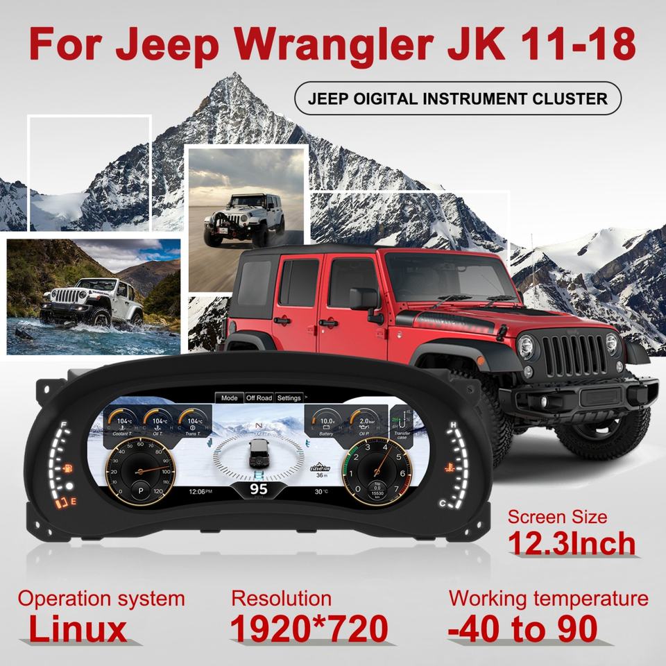 Navihua Linux System 12.3 Inch LCD Dashboard Car Digital Instrument Cluster Speedometer for Jeep Wrangler JK 2011- 2017