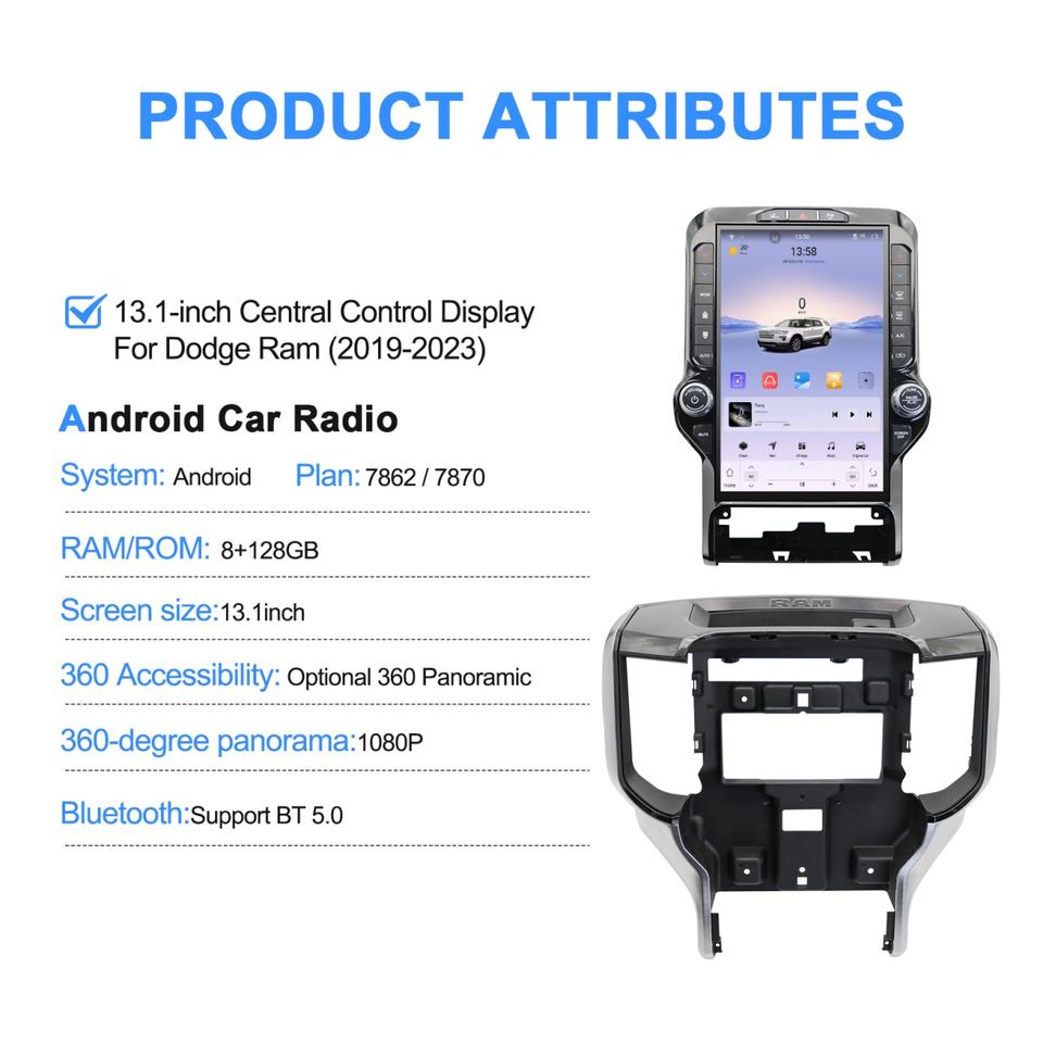 Navihua New Design 13.1 Inch Android Car Radio GPS Navigation Multimedia Carplay Autostereo DSP Headunit for Dodge RAM 2019-2023