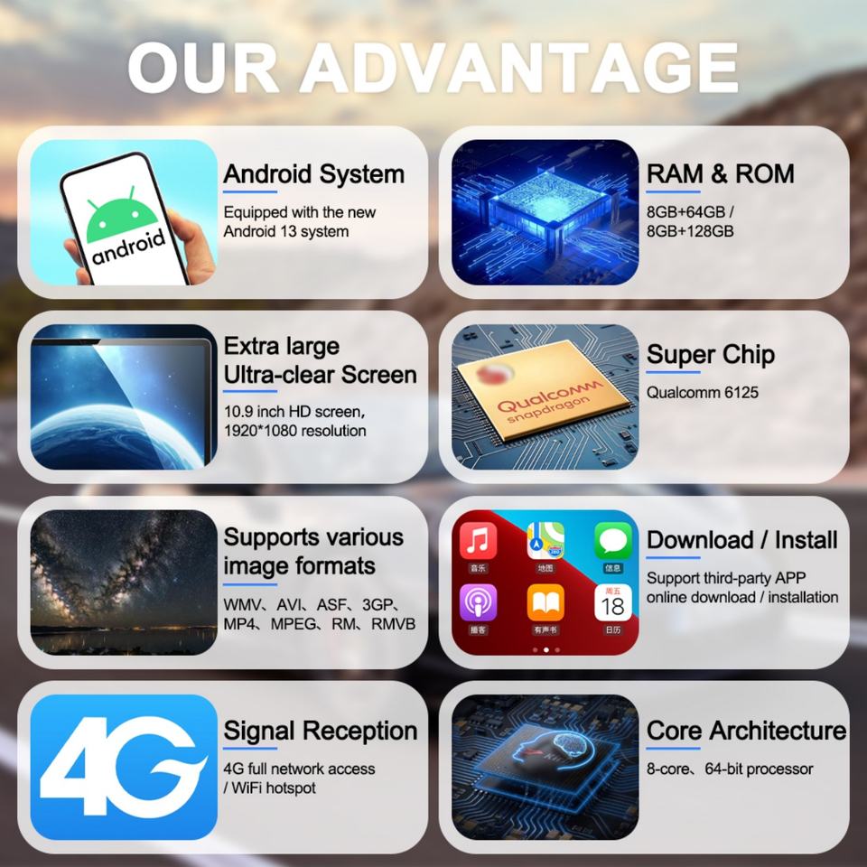 Gps, Stereo, HANDSFREE, DSP, CarPlay, Mirror Link, android auto, picture in picture, File Manager, Car Steering Wheel Control