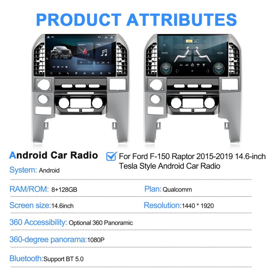 Navihua New Design 14.6 Inch Screen Android Car Radio Multimedia Carplay Auto Stereo for Ford F150 Raptor 2015-2019