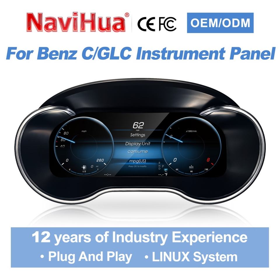 Navihua Speedometer Virtaul Linux System Digital Cluster for Benz C GLC W205 X253 2015 2019 LCD Instrument Dashboard Auto Meter