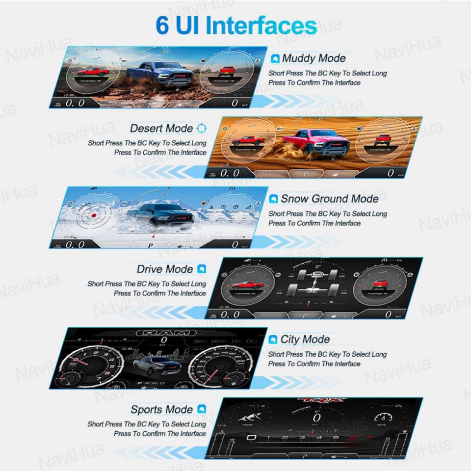 Navihua Virtual Instrument Cluster for Dodge RAM 1500 2500 3500 2013-2018 Digital LCD Speedometer Dashboard