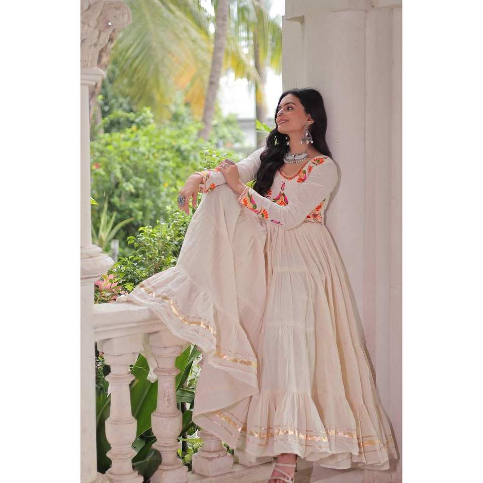 Navratri Special Beautiful Evening Gown with Multi-Thread Embroidery