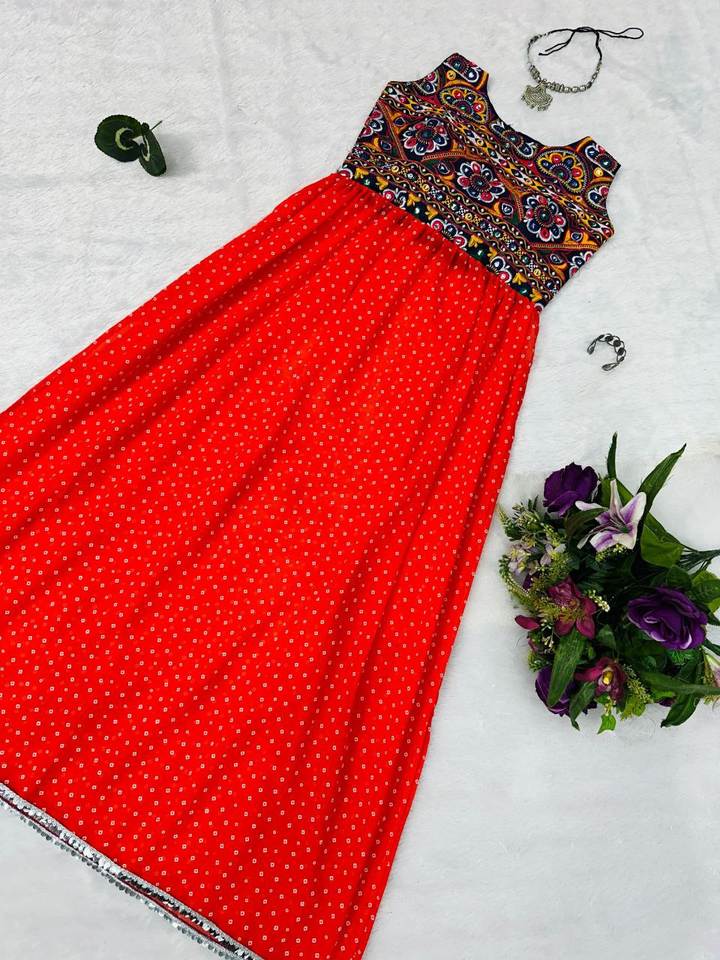 Navratri Special Collation Designer Red Kurti In Georgette Fabric On Embroidery Work For Indian Womens Wear For Festivals