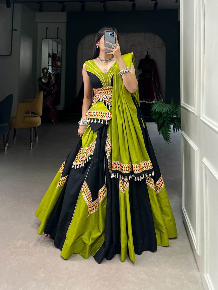 Navratri Designer Lehenga Choli in Gamthi Work and Gota Patti With Kodi Lace Festive Cotton Fabric for Parties