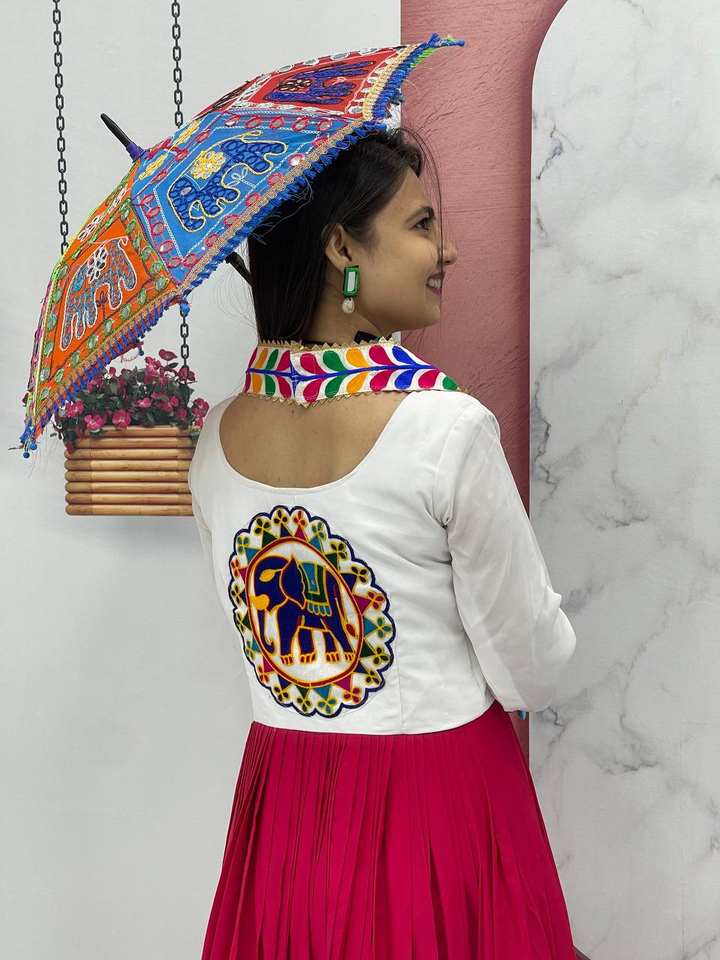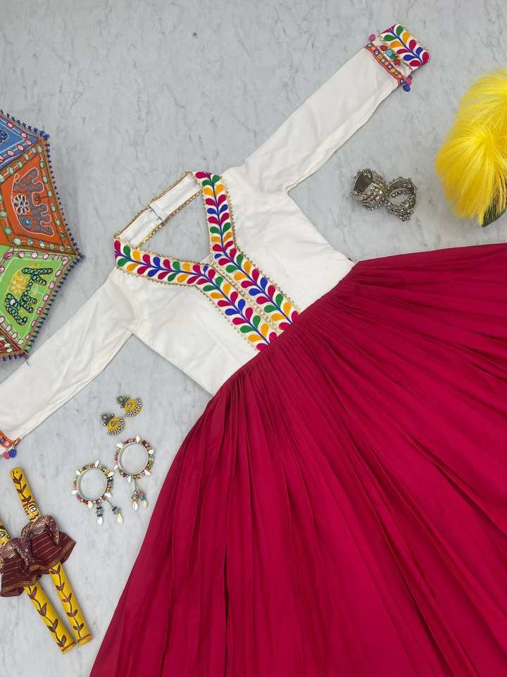 Navratri Special Long Gown With Gamthi work with multi gota patti and kodi lace touch up