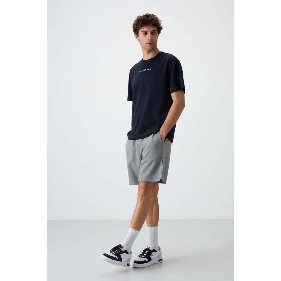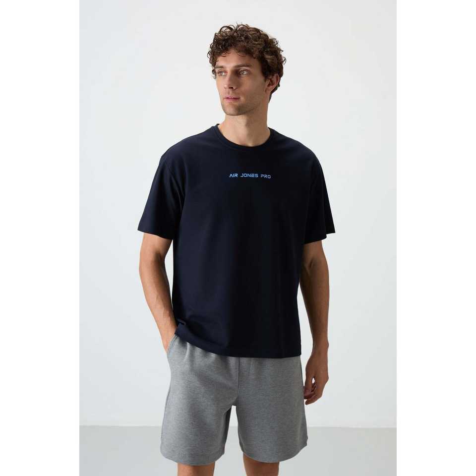 Navy Blue 100% Cotton T-Shirt for Men Thick Textured Oversize Fit & Printed Knitted Fabric-88364