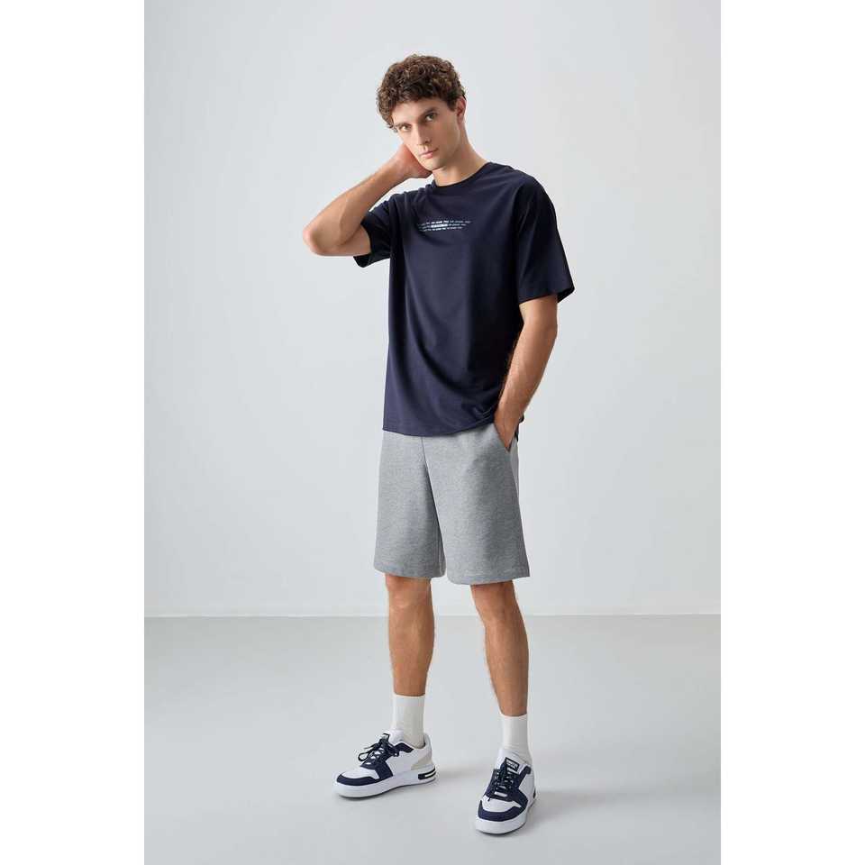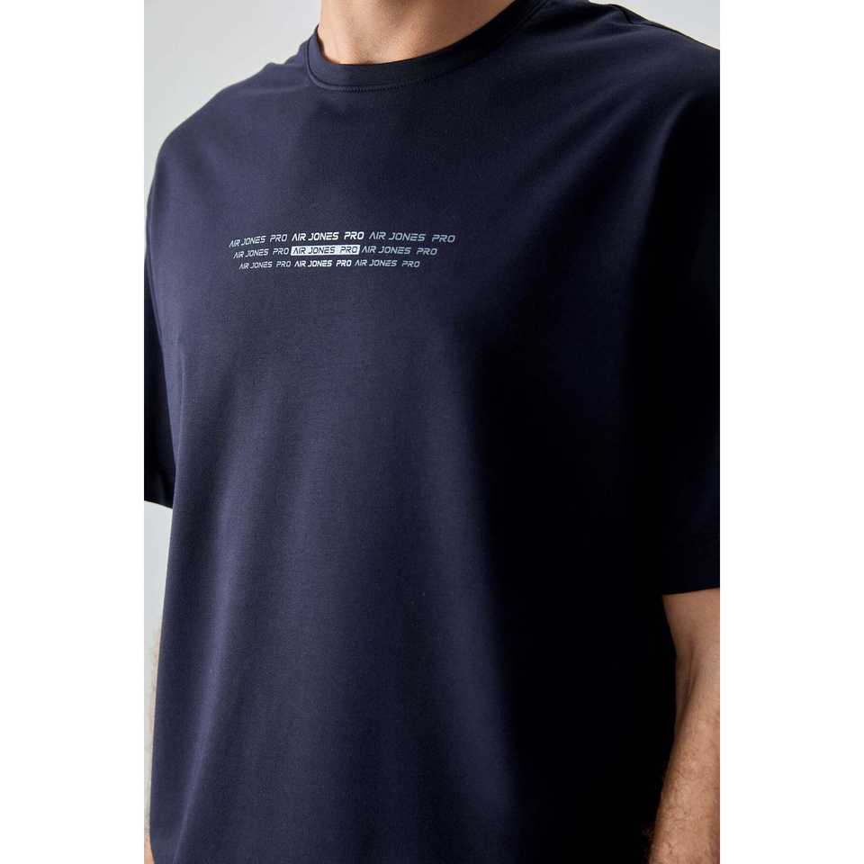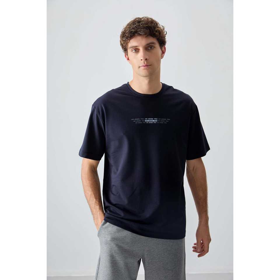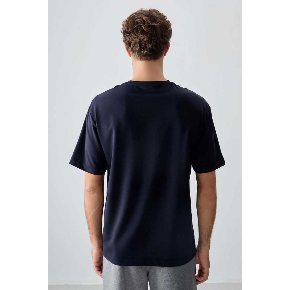 Navy Blue 100% Cotton T-Shirt for Men Thick Soft Textured Oversize Fit with Printed Design-88374