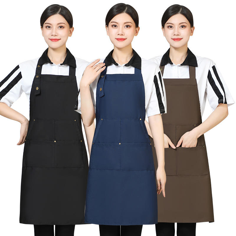 Navy Blue Adjustable Apron With Pockets For Kitchen Workwear One Size Polyester