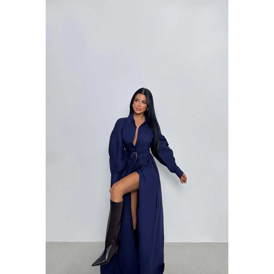 Navy Blue Ball Gown Evening Dress with Belt Detail XS/XL Formal Prom Dresses Short Sleeves Knee-Length
