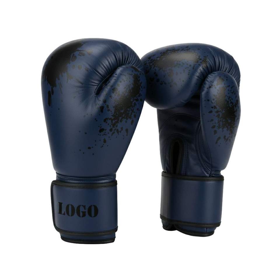 Navy Blue Boxing Gloves Black Splash Pattern Custom Logo Hand Grips Reinforced Synthetic Leather Training Sparring Mitts