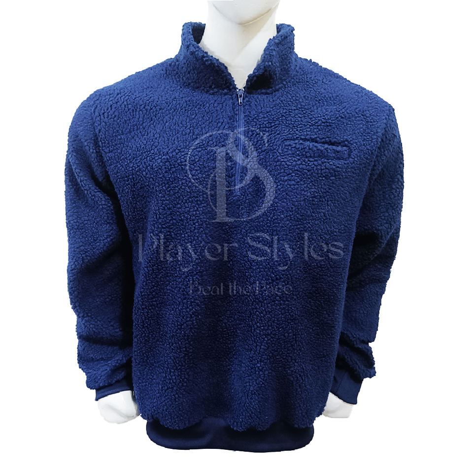 Navy Blue Sherpa Fleece Hoodie High Quality Regular Fit Winter Custom Logo Embroidered Player Design Applique Plain Dyed Solid