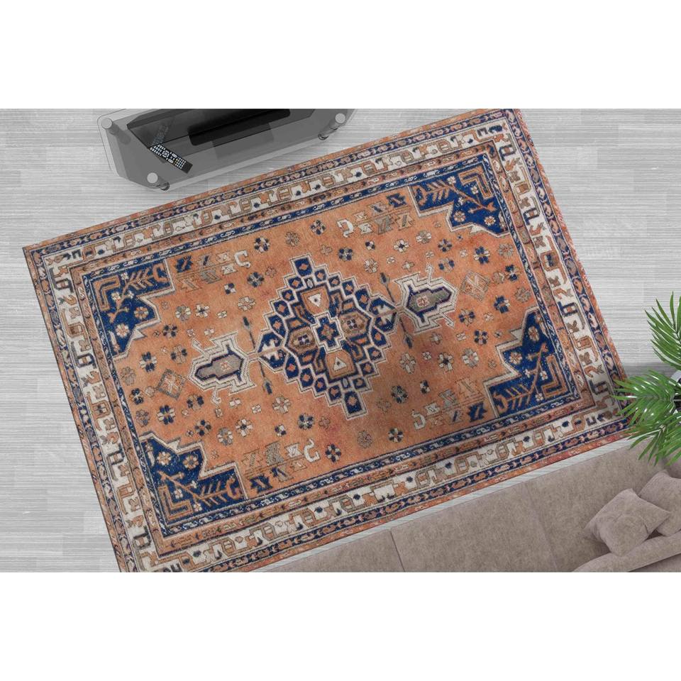 Navy Blue Geometric Machine Washable Turkish Printed Rug: Anti-Slip Carpet,Nonwoven Thin Rug