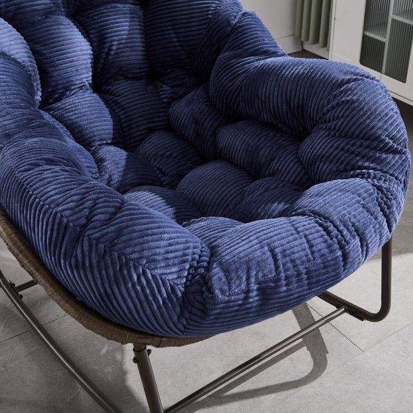 Navy Blue Outdoor Rattan Rocking Chair with Padded Cushion for Porch Living Room Patio Garden