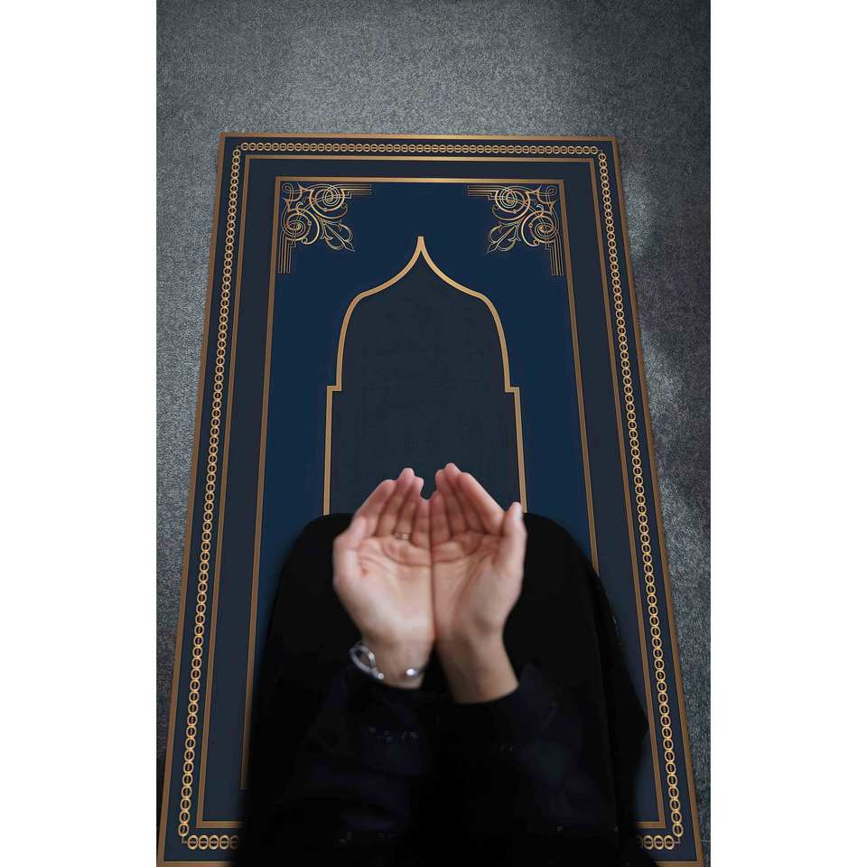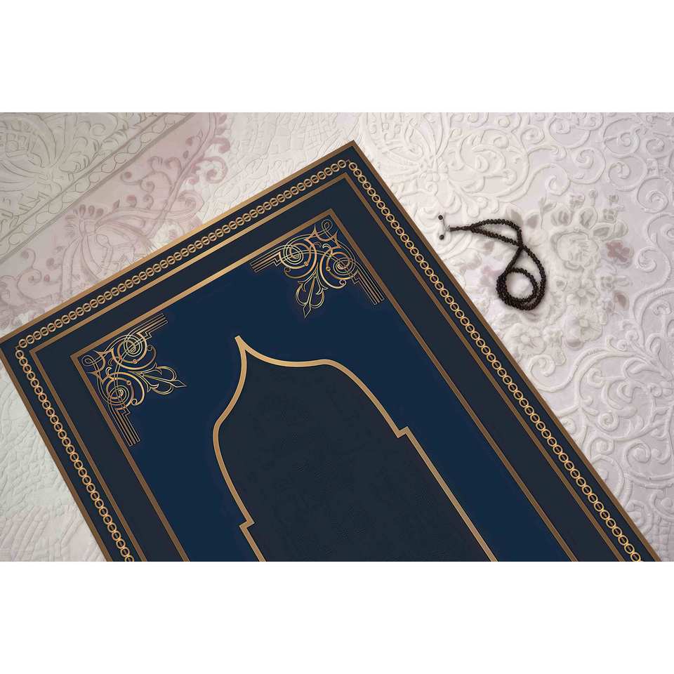 Navy Blue Prayer Rug: Gold Accent Islamic Gift, Machine Washable,Nonwoven Thin Rug